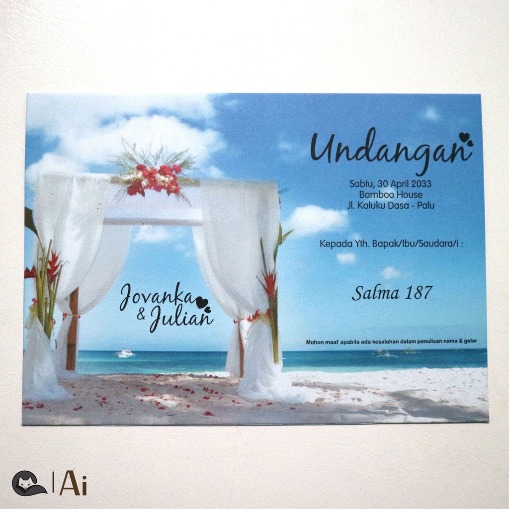 Undangan pernikahan modern, tema biru, unik, murah, bahan.